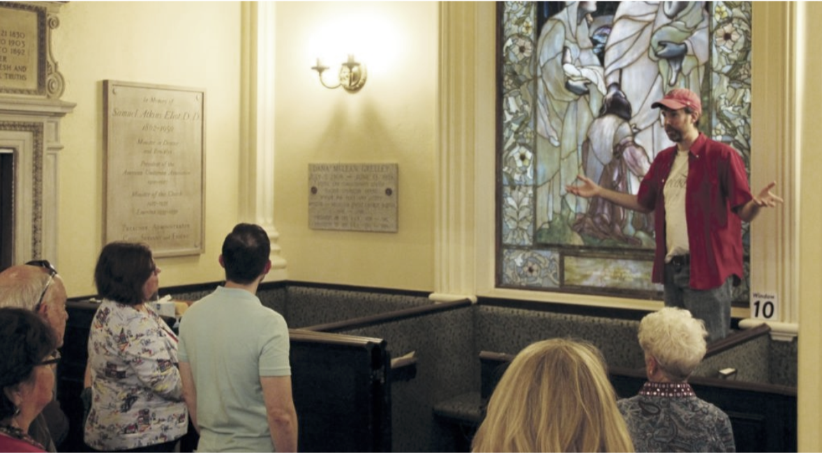 We are proud to share the resplendent beauty of our historic building and Tiffany stained glass windows with visitors from around the world. Between June and October, volunteers operate a Visitors Center offering self-guided tours with an audio guide. The Center is typically open on Fridays from 11:00 am to 3:00 pm.